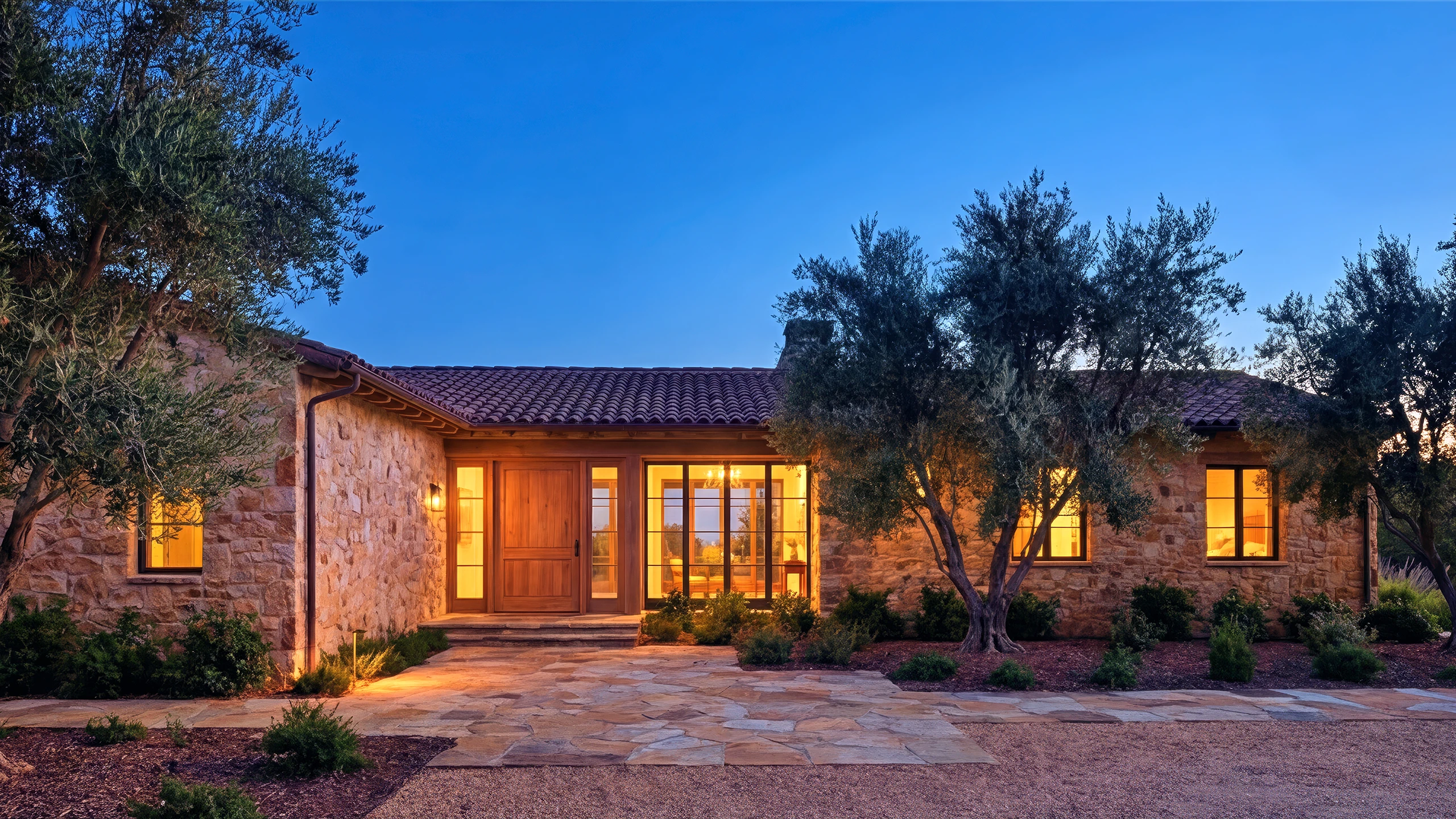 Casa Petralma is a cinematic visualization of an organic-modernist luxury residence — a series of countryside retreats built around the dialogue between stone, timber, light, and landscape. The project explores how a single architectural language can adapt to wildly different terrains, moving from autumn-toned mountains to high-desert vistas without losing its grounded, slow-living spirit. Every space is anchored by tactile natural materials: dry-stack stone walls, reclaimed timber beams, terracotta roof tiles, hewn limestone, walnut cabinetry, lime-washed plaster, and linen. Hero moments include an infinity-edge patio with a steel fire bowl overlooking autumn ranges, a sculpted rock-face master suite, a skylit stone soaking tub, and a walnut shaker kitchen bathed in garden light.