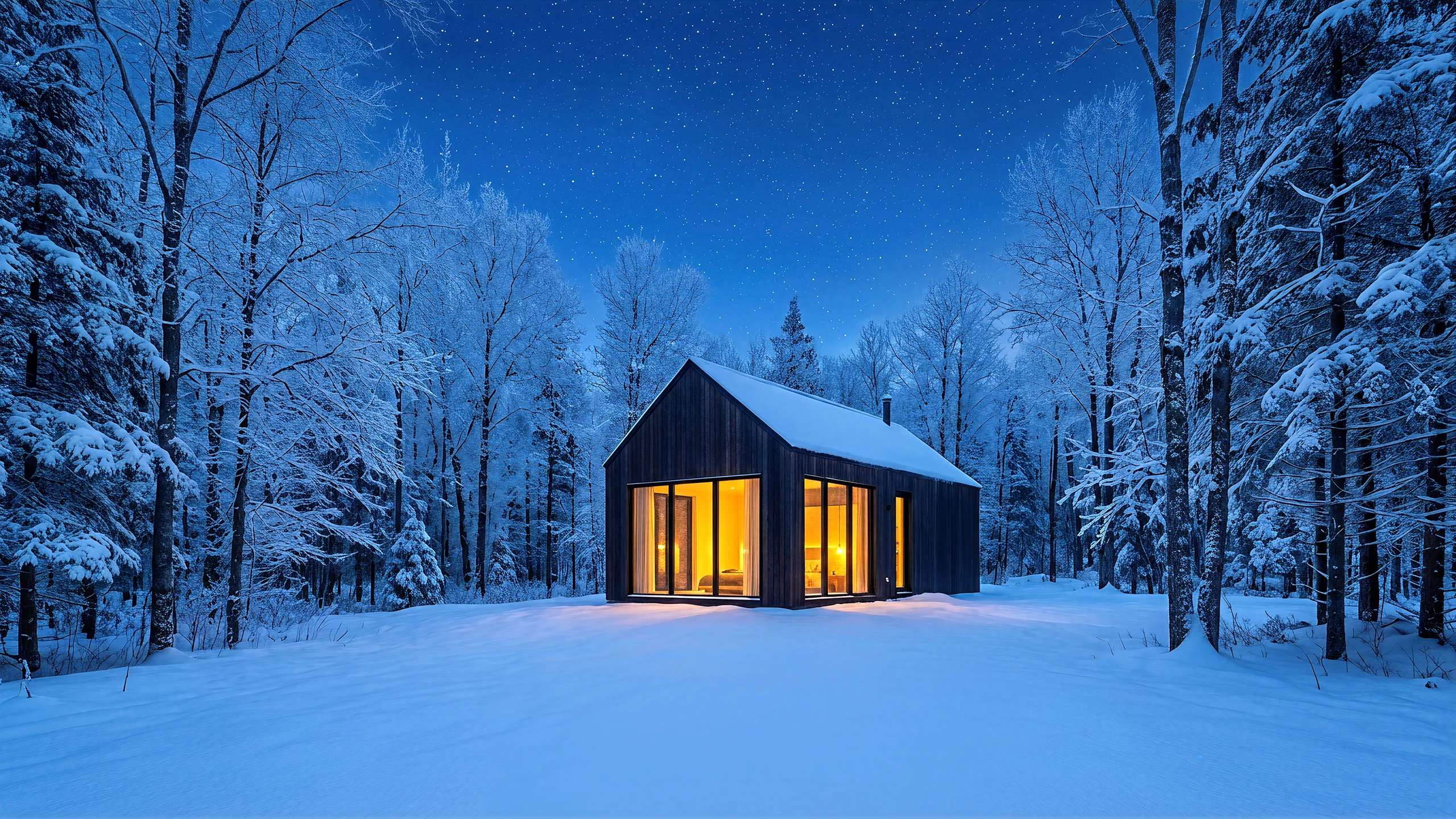 A photorealistic 3D architectural animation built in Unreal Engine 5, capturing the contrast between a harsh snowy exterior and a warm modern interior retreat. Atmospheric storytelling through cinematic camera work, layered interior lighting, and material-driven design. Lumen global illumination handles the interplay between cool twilight snow reflections and warm interior light sources. PBR materials reproduce timber, stone, glass, and fabric with physical accuracy. Unreal Sequencer drives the full cinematic animation pipeline from camera choreography to post-process grading, delivering a production-ready visualization that communicates mood, spatial flow, and design intent in a single sequence.